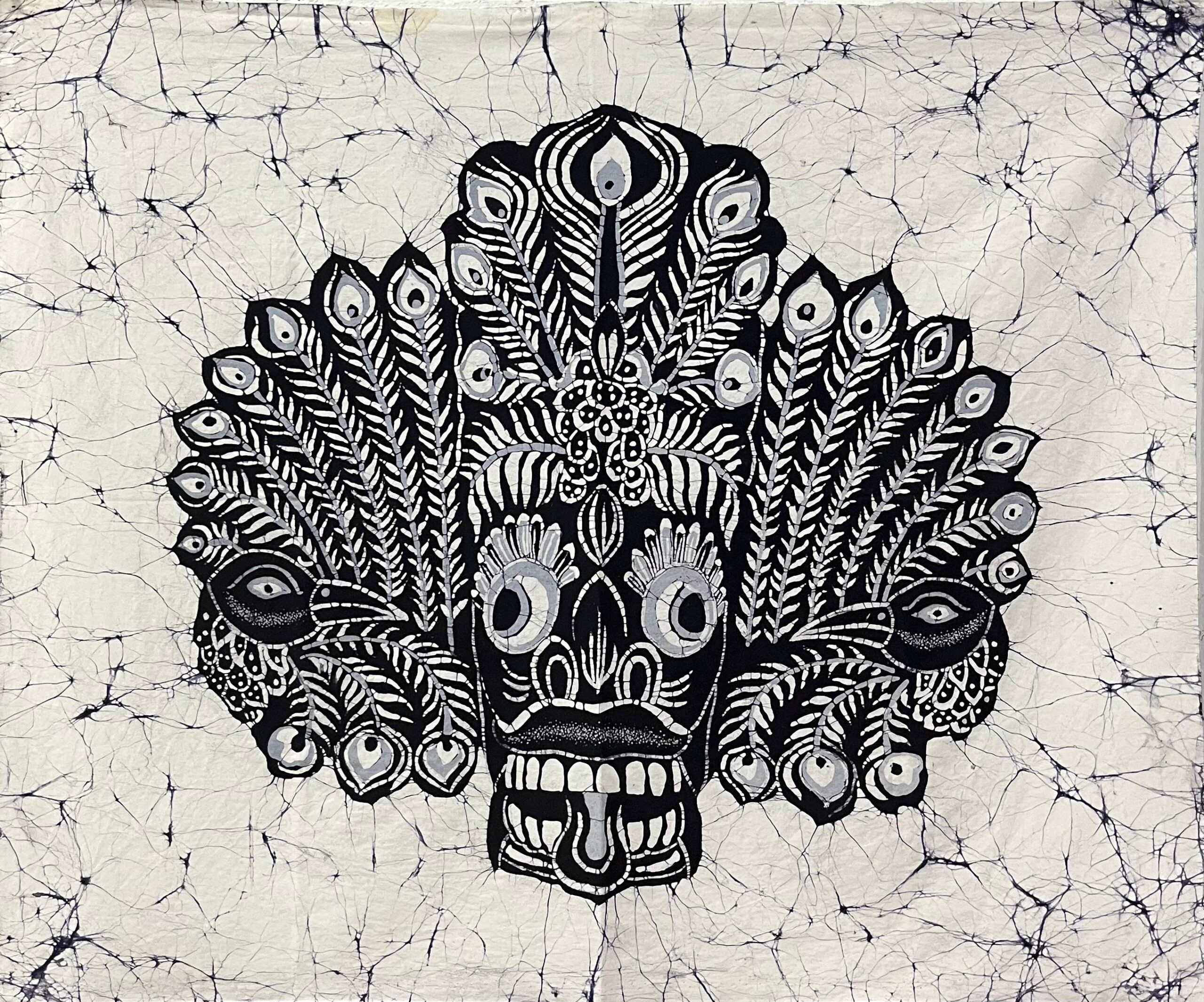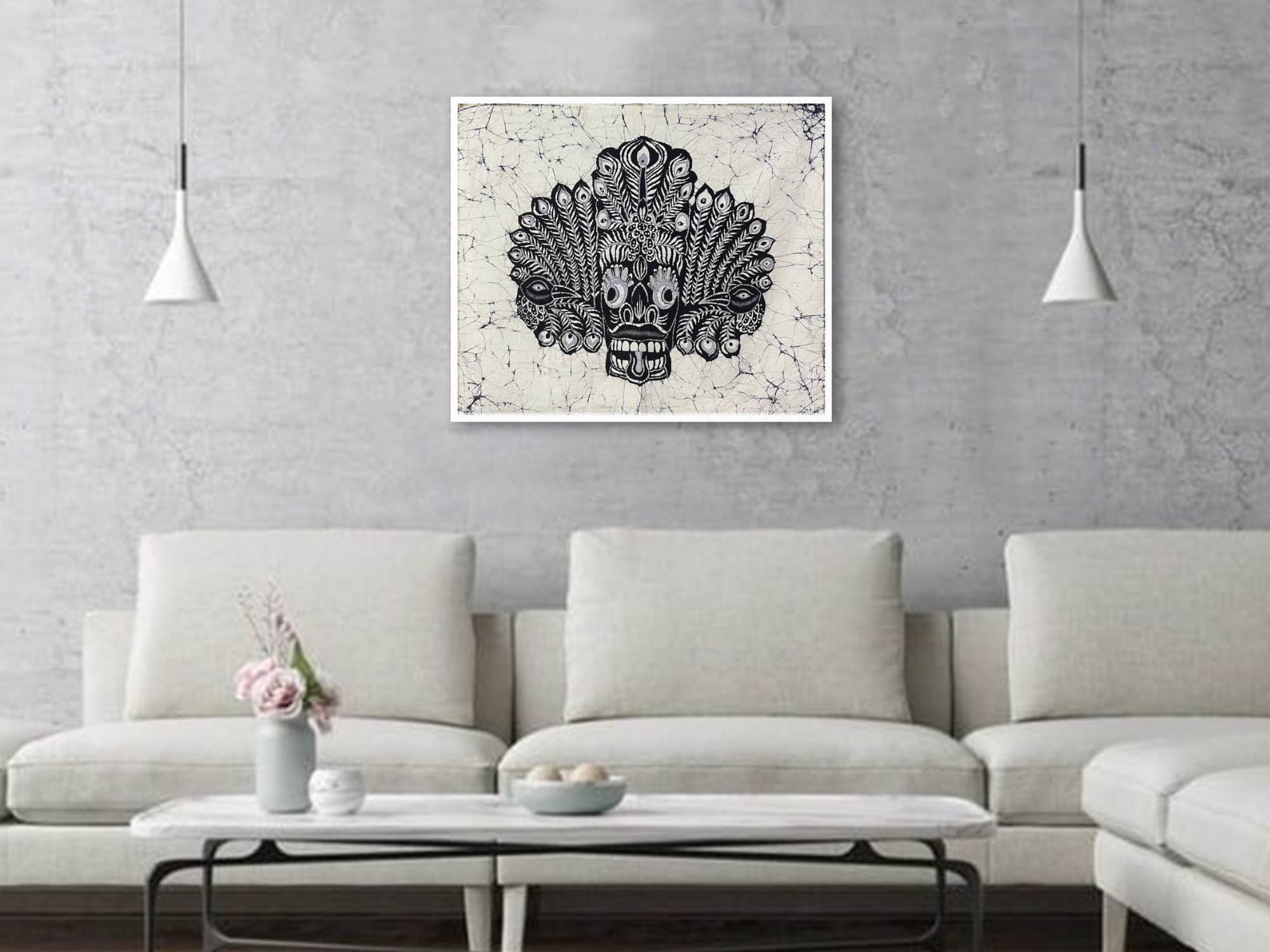 Celebrate the vibrant culture of Sri Lanka with this handcrafted batik wall hanging featuring a traditional devil mask. Rich in cultural significance, this artwork represents protection and warding off negative energy, making it a powerful and artistic addition to any space.